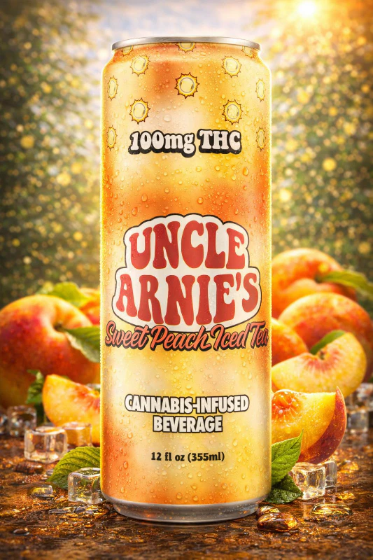 Packed with 100mg of THC in every 8oz bottle, Uncle Arnies is a trip worth taking man....The #1 selling 100mg Cannabis-Infused Beverage in CA, there's good reason it's flying off the shelves. Uncle Arnies Sweet Peach Iced tea is Sweet, refreshing and taste like a peach pie! So take it dose by dose or #crackitandsmackit and enjoy every sip. All our products are Nano infused for a 20-40 minute onset time.